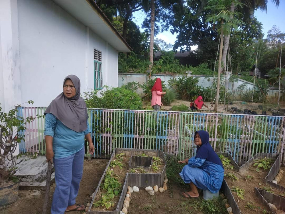 Gotong royong oleh ibu-ibu PKK Desa Limau Manis